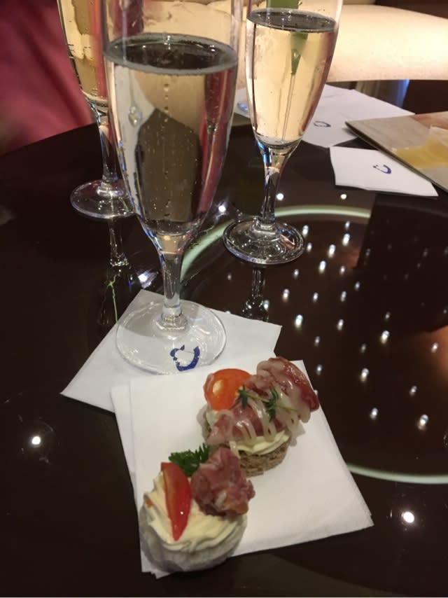 部屋にいてもトイレが使えないので、17時からのイベント、船長主催のカクテルパーティーに参加するべく部屋を後に、、、。