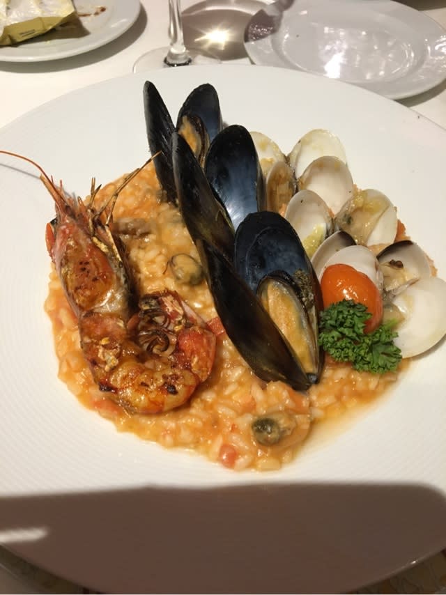 本当はステーキハウスで食事がしたかったのですが、コスタのダイヤモンドクラスの人たちで、朝昼晩、しかも全日程予約でいっぱい!!だそうです。