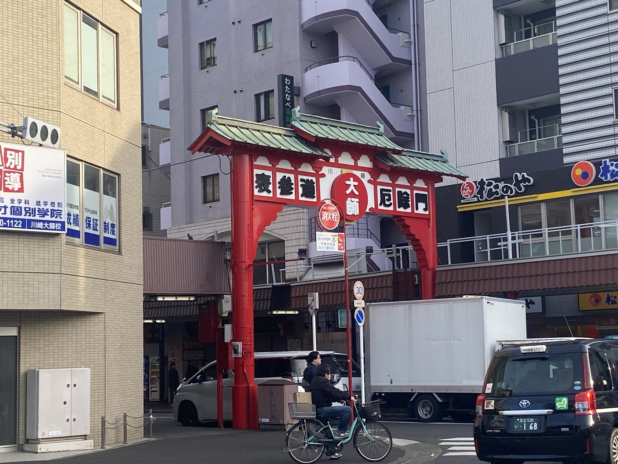 川崎大師駅に到着したあとは5分ほど歩きます。